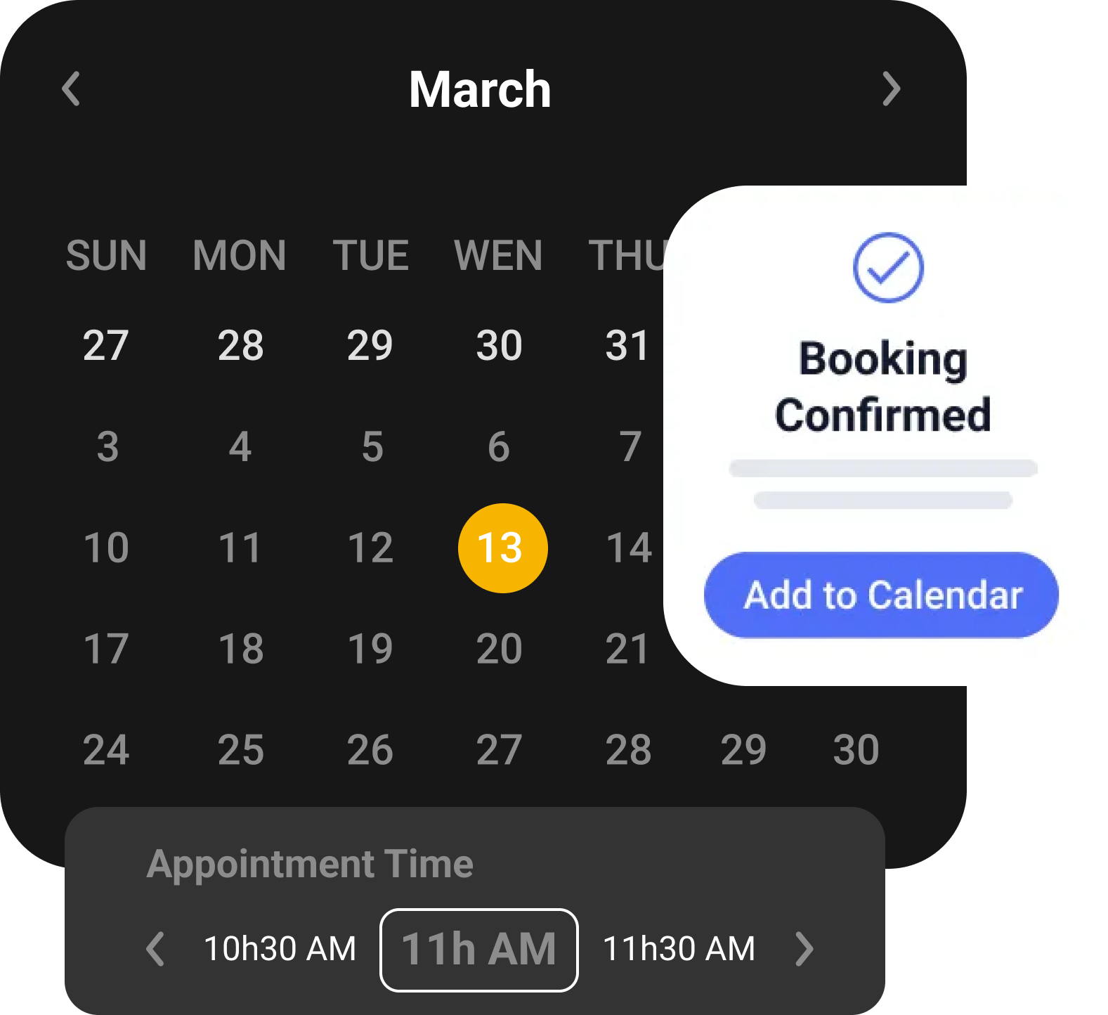 An easy-to-navigate calendar that displays available slots, allowing clients to book appointments directly from your website.