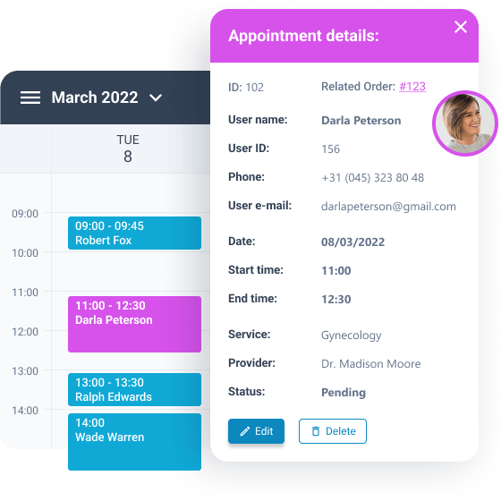 Tailor the booking system to fit your specific needs, from appointment types to available timeslots and more.